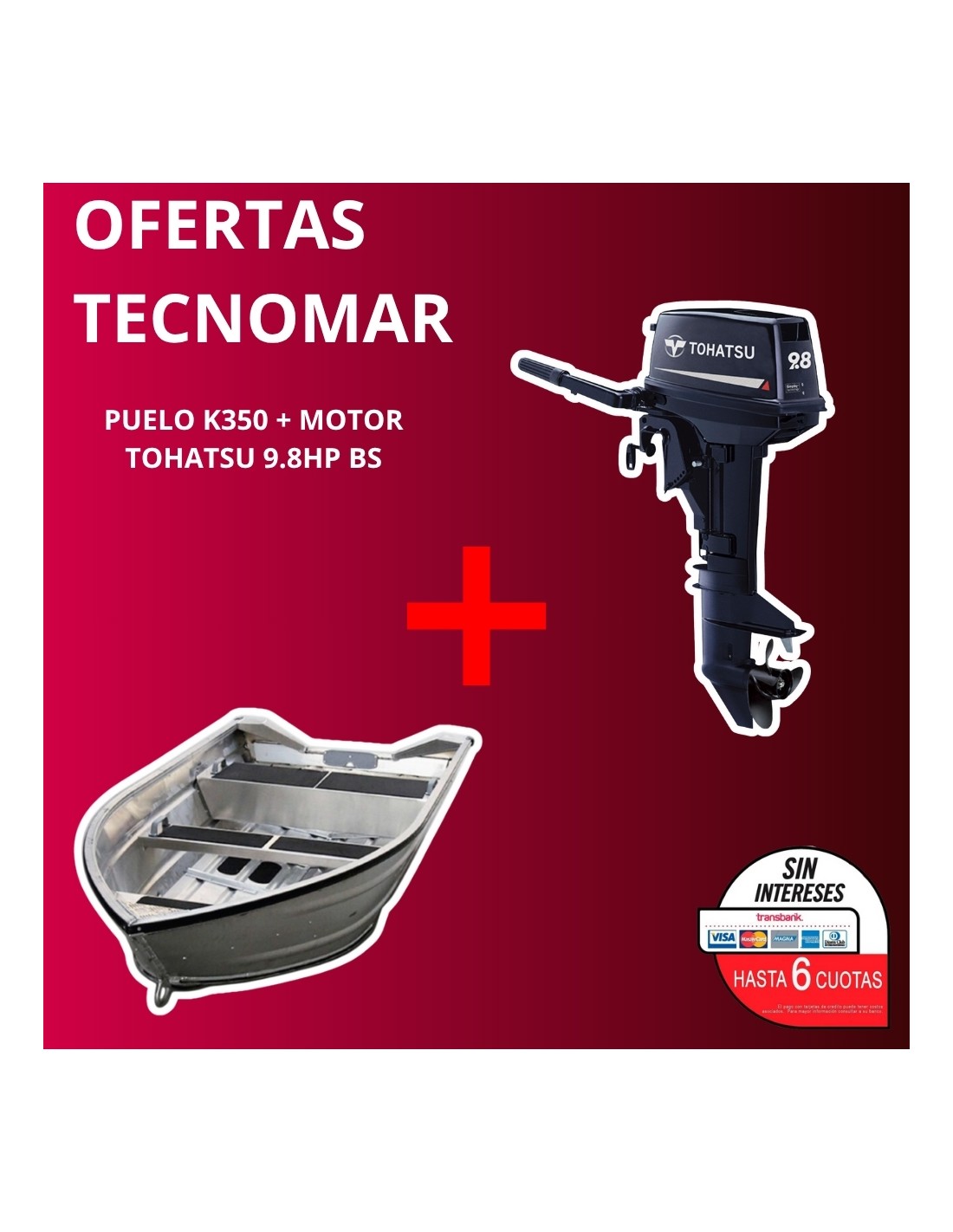 BOTE PUELO K350+MOTOR TOHATSU 2T 9.8HP BS